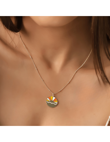 Material: Plata de Ley 925Acabado: Baño en Oro de 14k y Plata RodiadaSin Níquel y Sin PlomoLongitud: Cierre ajustable de 38 a 42 cmCierre: MosquetónGrosor cadena: 1 mmMedidas de Colgante: 17 mm